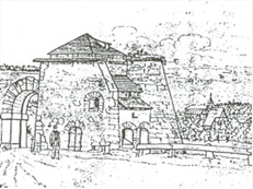 Rechte Klause, erbaut 1832, (Der Burschenschafter-Turm in seiner ursprünglichen Gestalt) Zeichnung von Leopold Zinnöcker 1848